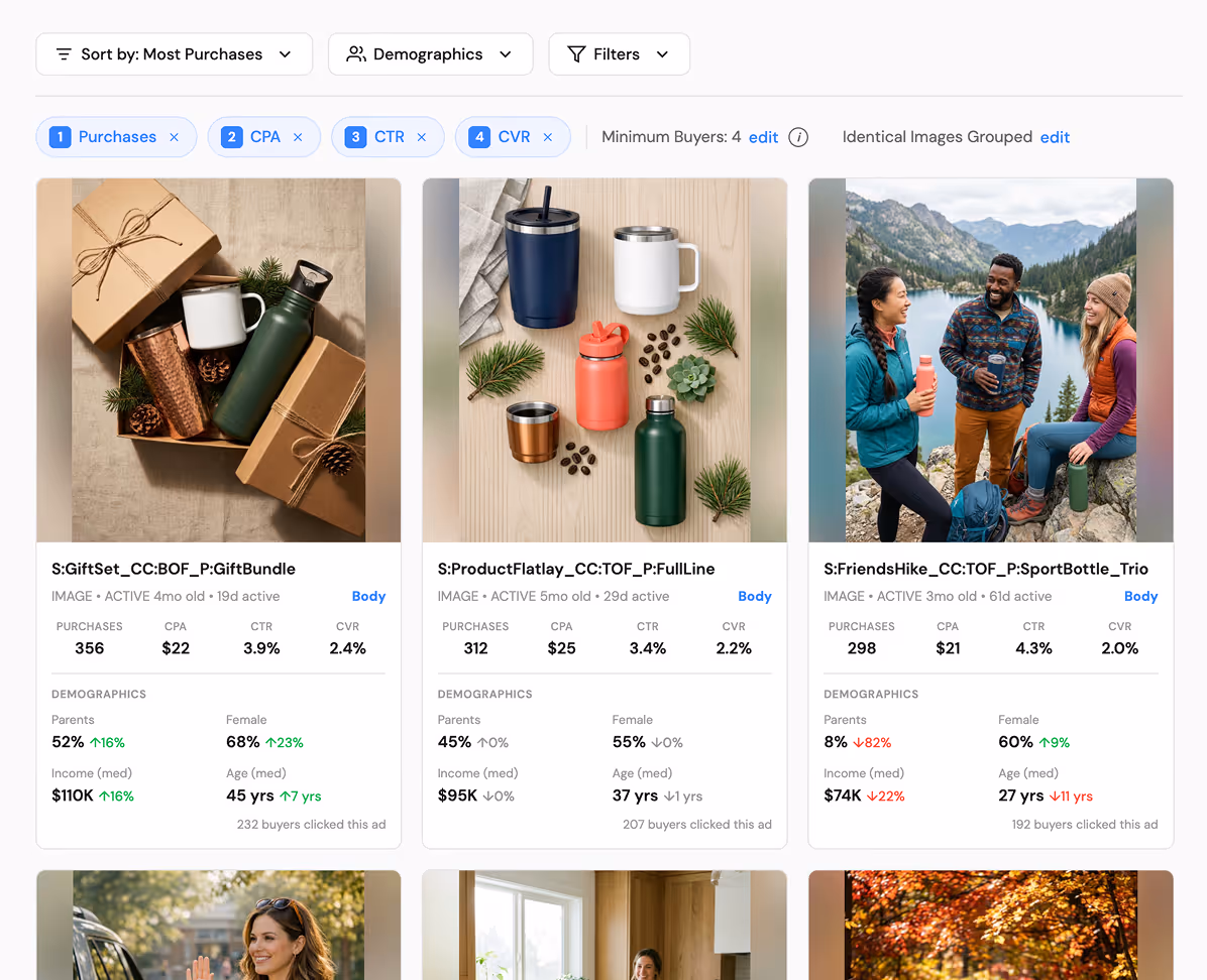You get: Visibility into how buyers actually respond to creative and a clear sense of where your strategy is too narrow.