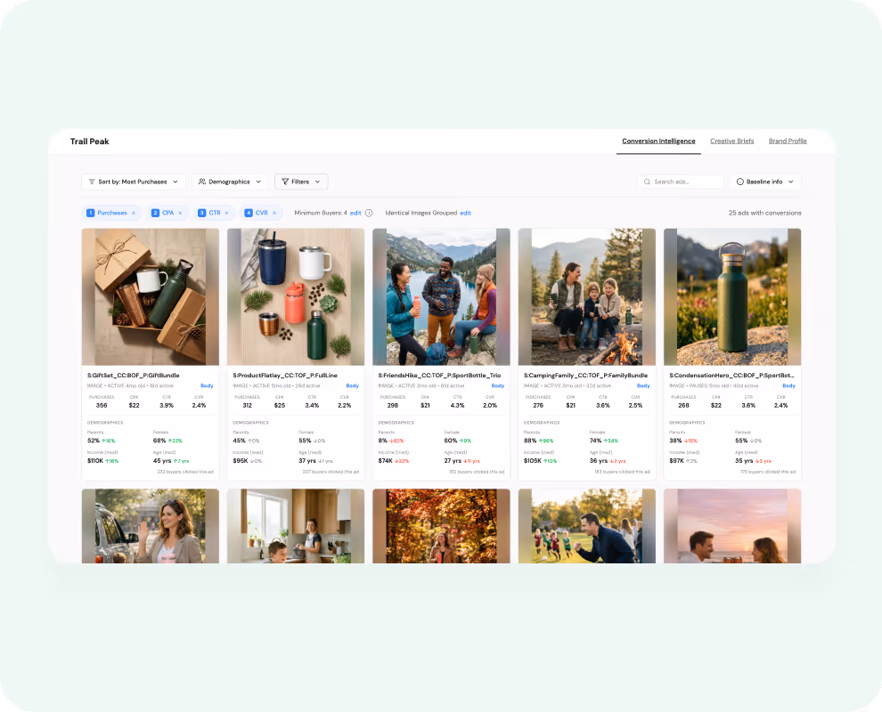 Join 2,000+ brands using Proxima Conversion Intelligence to build a healthy, expandable creative portfolio that Meta can actually scale.
